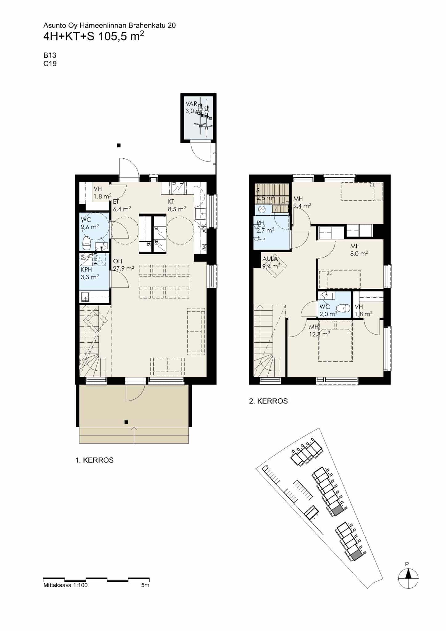 Samanlaisia huoneistoja löytyy taloyhtiöstä yhteensä kolme kappaletta (B13 ja C19).