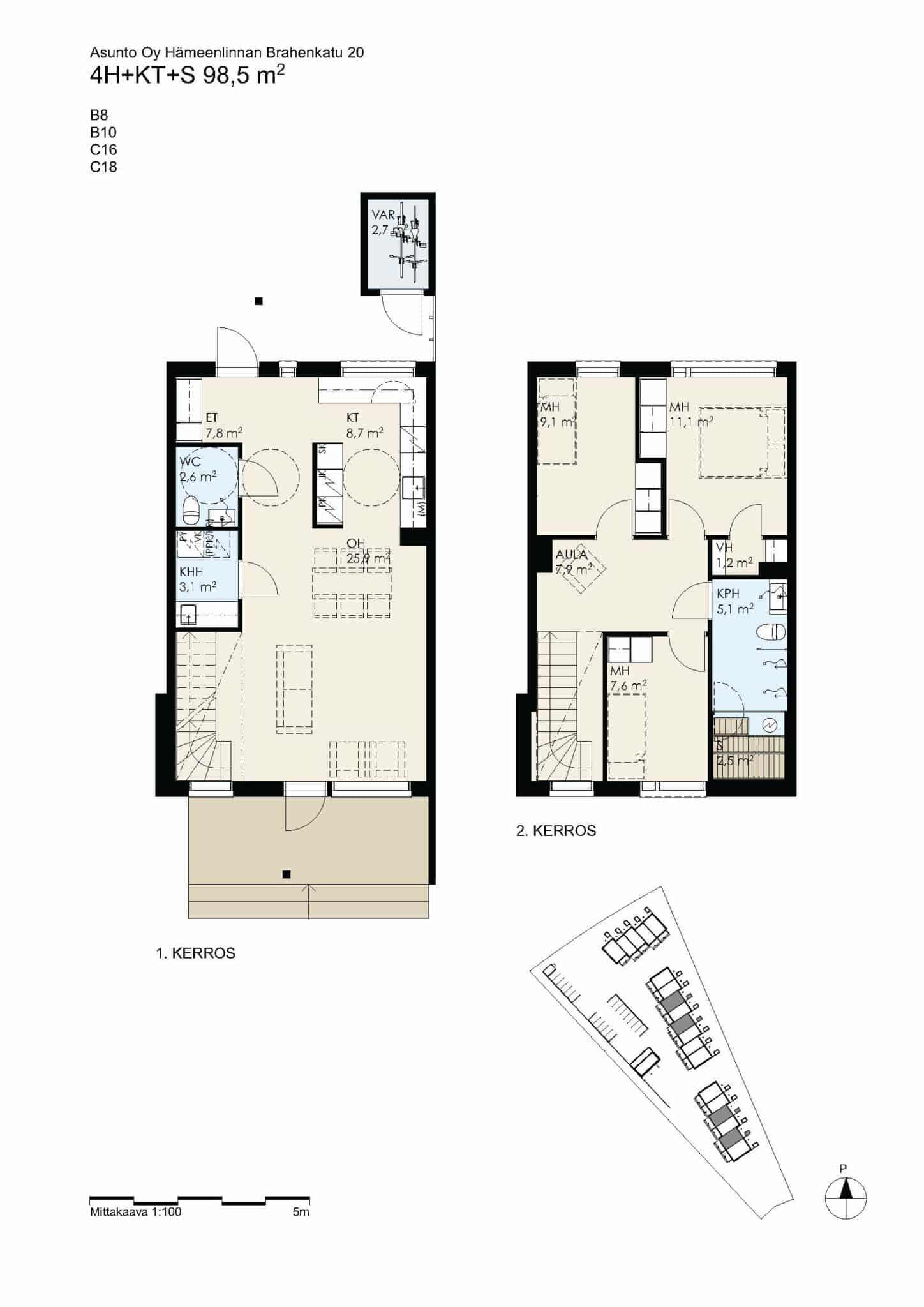 Samanlaisia huoneistoja löytyy taloyhtiöstä yhteensä neljä kappaletta (B8, B10 ja C18).